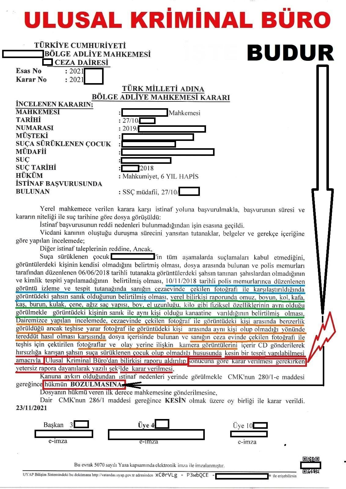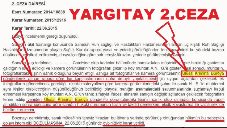AŞAĞIDAKİ MAHKEME BOZMA KARARINDA, ULUSAL KRİMİNAL BÜRO’ dan RAPOR ALINMADAN MAHALLİ BİLİRKİŞİ RAPORUYLA YETİNİLEREK CEZA VERİLMESİ UYGUN BULUNMAYIP KARAR İPTAL EDİLMİŞTİR.